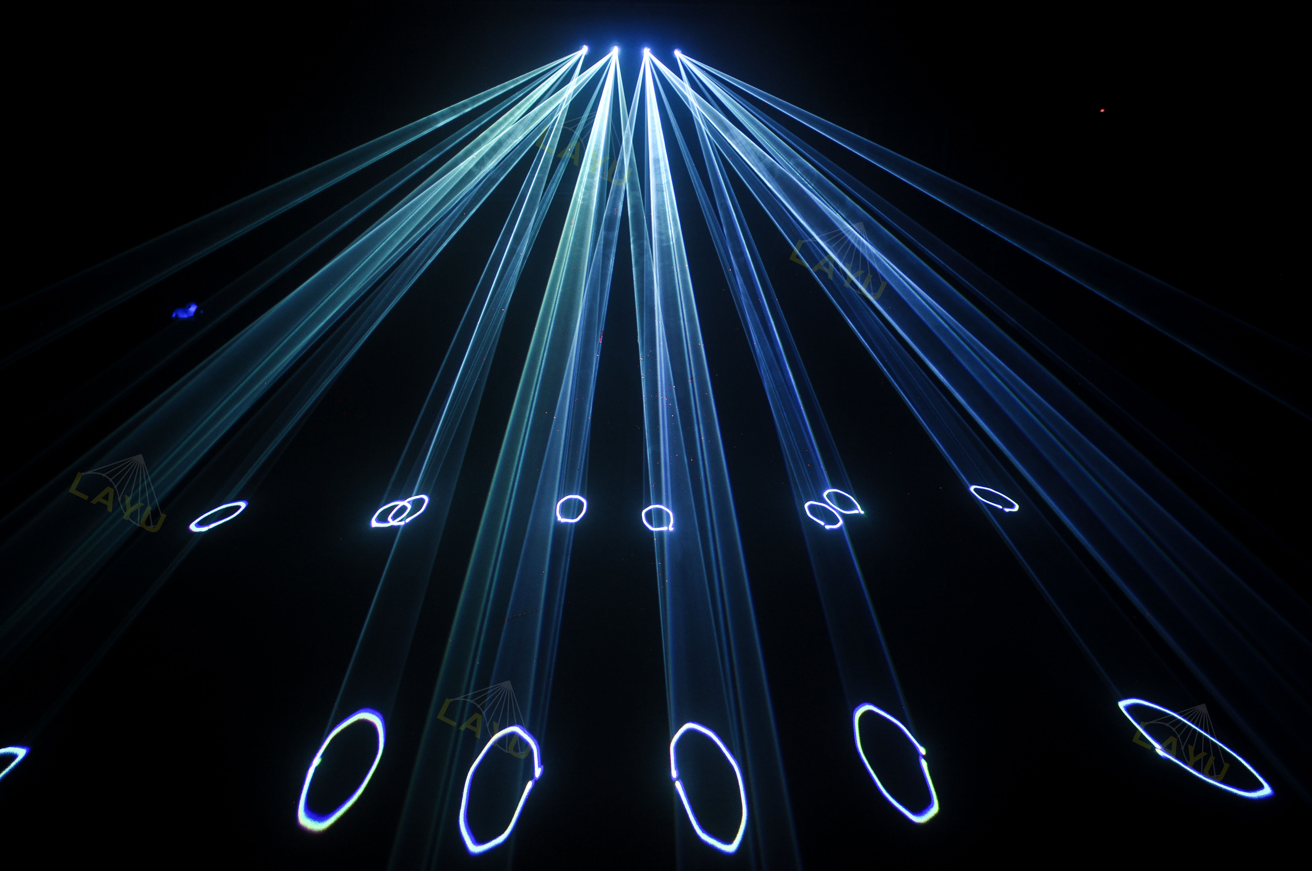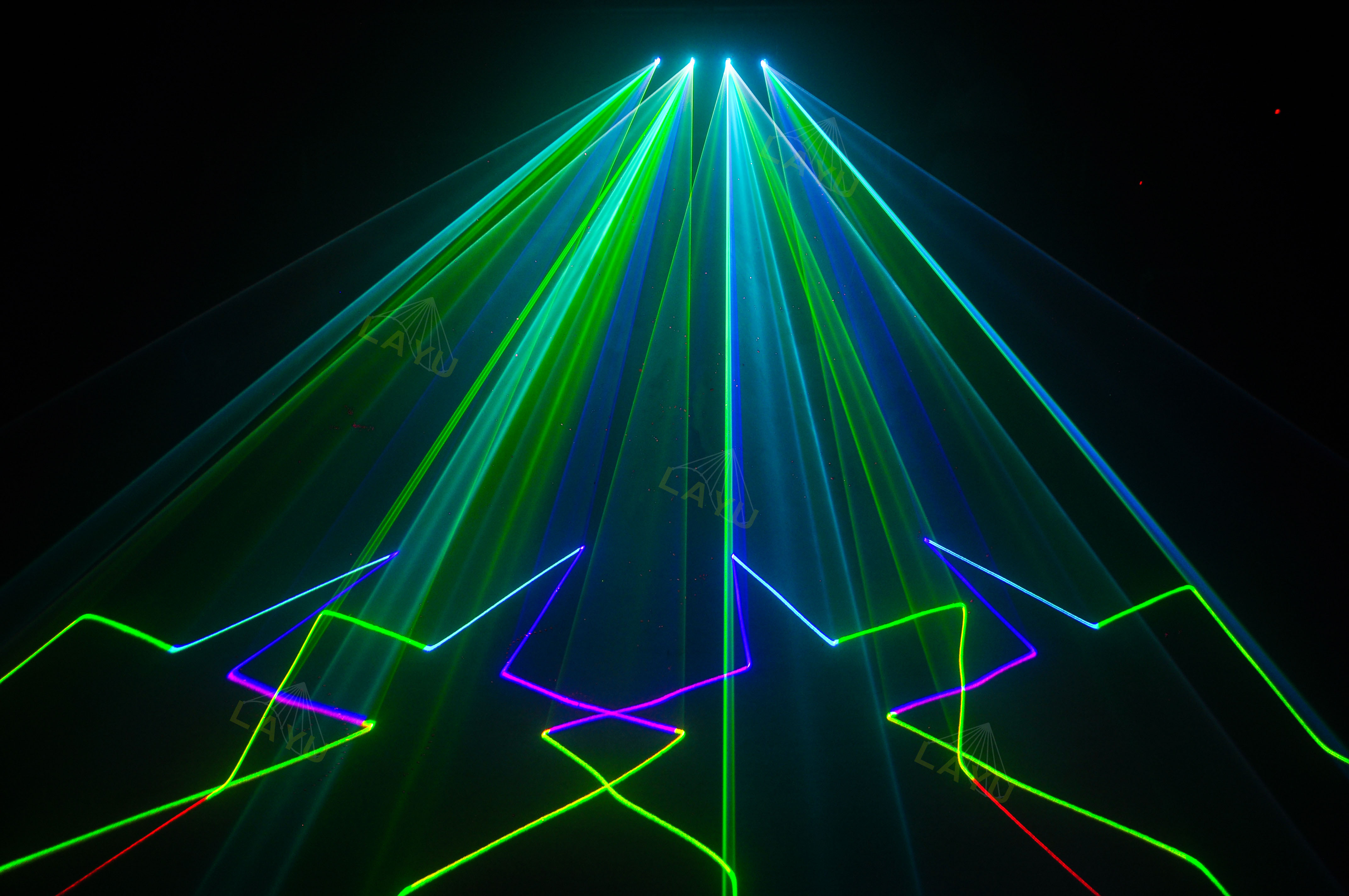 2.Mehr als 128-Arten von Lasergrafiken und Strahleffekten eingebaut. Es hat sowohl synchrone Effekte als auchkombinierte Effekte.